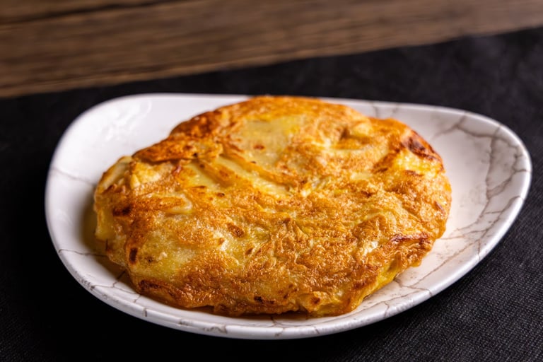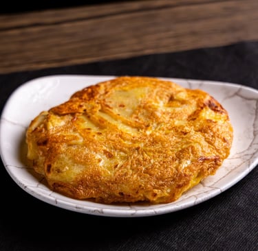 Jugosa por dentro, con cebolla pochada. Huevos camperos y patata seleccionada para una tortilla como pocas.